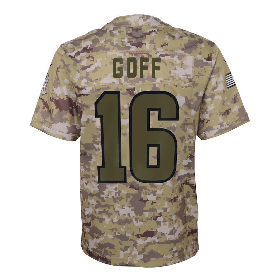 JARED GOFF LOS ANGELES RAMS SUPER BOWL YOUTH SALUTE TO SERVICE GAME JERSEY - CAMO 2018/2019
